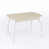 Стол Чикаго СТ МП 1100(1400)*680*750 Ноги 01 белые (стекло Бежевое глянцевое цвет КР)